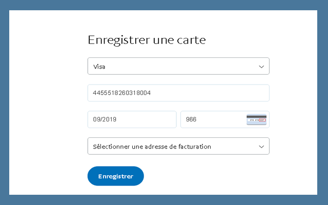 ستظهر لك ثلاثة صفوف من المعطيات خاصة بكل بطاقة ، فقط انت اختر صف واحد ثم إذهب الى موقع البايبال وقم بتسجيل الدخول الى حسابك الغير مفعل و اضغط على اضافة بطاقة بنكية ، و في نوع البطاقة اختر فيزا