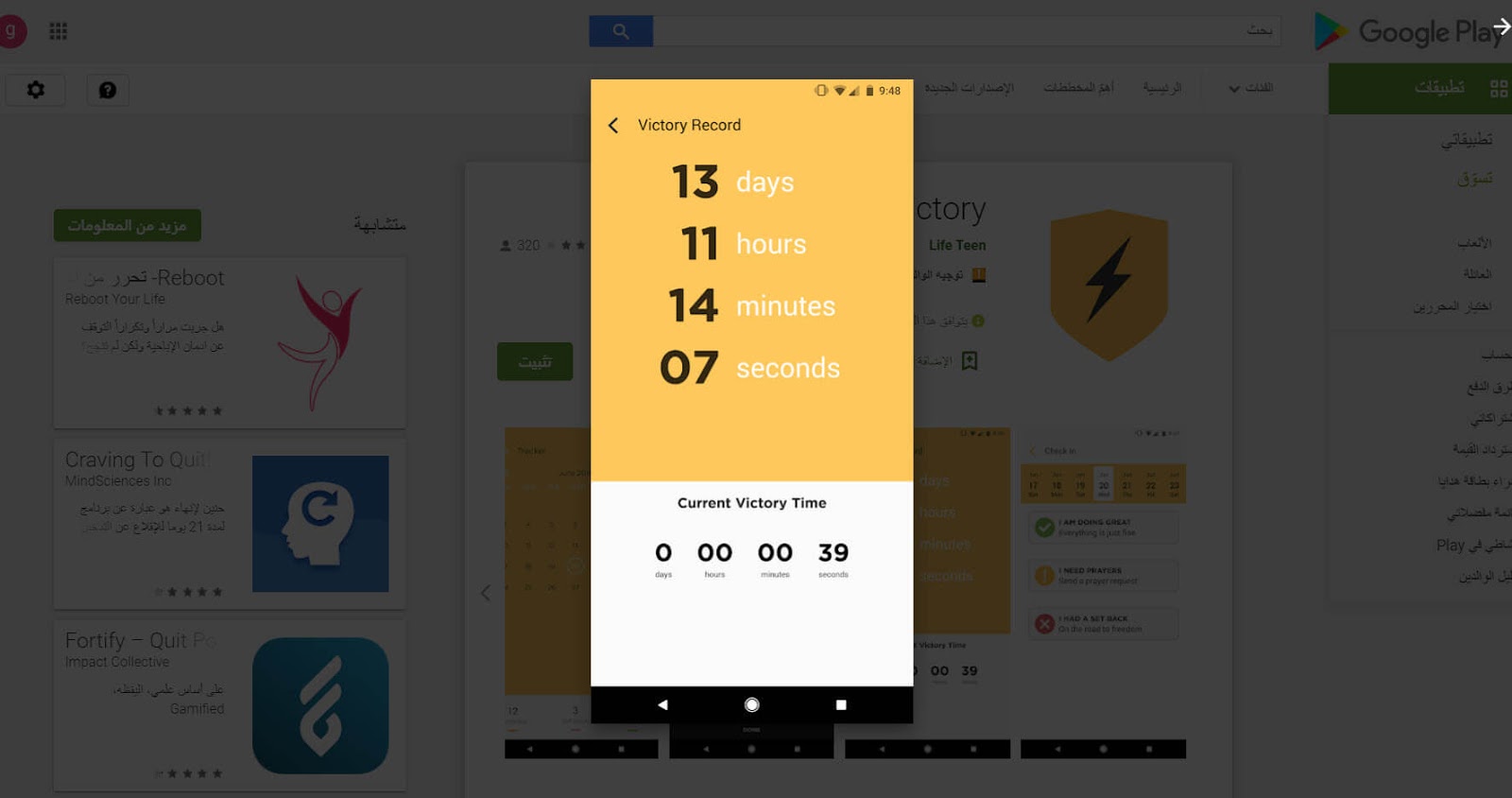 يساعدك Victoryعلي التحكم في سلوك عندما تحصل علي الرغبة في مشاهده الاباحية حيث يقوم التطبيق بتقويتك وفي حاله ان كنت تعاني من انتكاسة يمكنك ادخال نوع المشاعر التي تدفعك لليقام بذلك حيث يثوم البرنامج بتحليلها ليساعك بعد ذلك كما يقوم التطبيق يوميا بتحفيزك ويستمر في ذلك طوال اليوم .