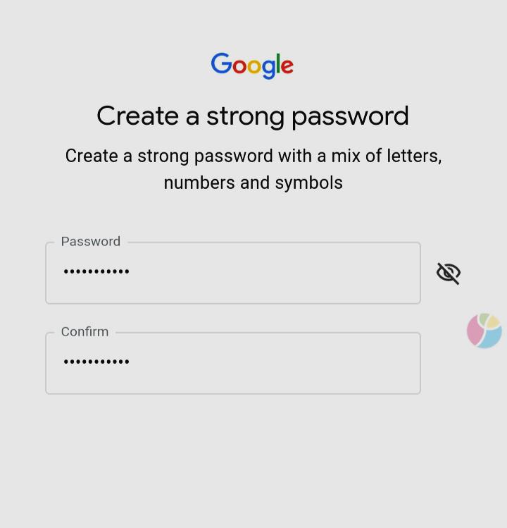اختر عنوان Gmail من العناوين المقترحة لديك أو قم بكتابة عنوان ايميل آخر خاص بك من خلال النقر على خيار “إنشاء عنوان Gmail” ثم اضغط على زر “التالى” وقم بإدخال “كلمة المرور” ثم كررها مرة أخرى للتأكيد، ثم اضغط على زر “التالى”