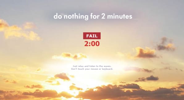 فكرة التطبيق أنه يمنعك من القيام بأي شيء خلال دقيقتين فقط، سوى النظر إلى المناظر الطبيعية الجميلة والمتواجدة بالخلفية، مع سماع صوت الأمواج المُصاحبة لها. فإذا تحركتك من مكانك ظهرت لك كلمة «Fail» والتي تعني أنك لم تسترخي بعد ثم يبدأ في عد الدقيقتين من جديد.
