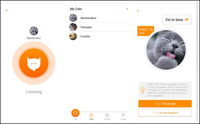 من الواضح أنها تعابير ليست موثوقة بنسبة 100٪ ويمكن للمستخدمين تعديل هذه الترجمات وفقًا لردود فعل قططهم. لهذا ، من الممكن تسجيل مواء القط الذي نريد وسيعطيه التطبيق معنى ؛ إذا تبين أنها غير مناسبة ، فمن الممكن إضافة تعديلات لتشكيل الترجمة.