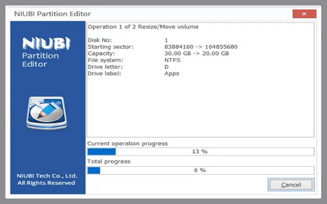 مع NIUBI Partition Editor ، يمكنك الحصول على تقنية الحماية من التراجع، والتي يمكنها تدوير الكمبيوتر تلقائيًا إلى قبل حالة التغيير في ثانية واحدة ، حيث أنه في حالة حدوث أي خطأ في البرنامج أو مشكلة في الأجهزة مثل انقطاع التيار الكهربائي أثناء تغيير الحجم. وعلى هذا النحو، سوف يتم الحفاظ على نظام التشغيل والبيانات الأخرى بشكل سليم. كما يمكنك الحصول على القدرة على إلغاء العمليات في أي وقت تشاء. قم بإلغاء تعريف مديري التقسيم الآخرين عندما تقوم بتأكيد الإجراء الذي قد فقدت السيطرة عليه، حيث يسمح لك بإيقاف أو إلغاء العمليات في أي فترة زمنية تريدها.