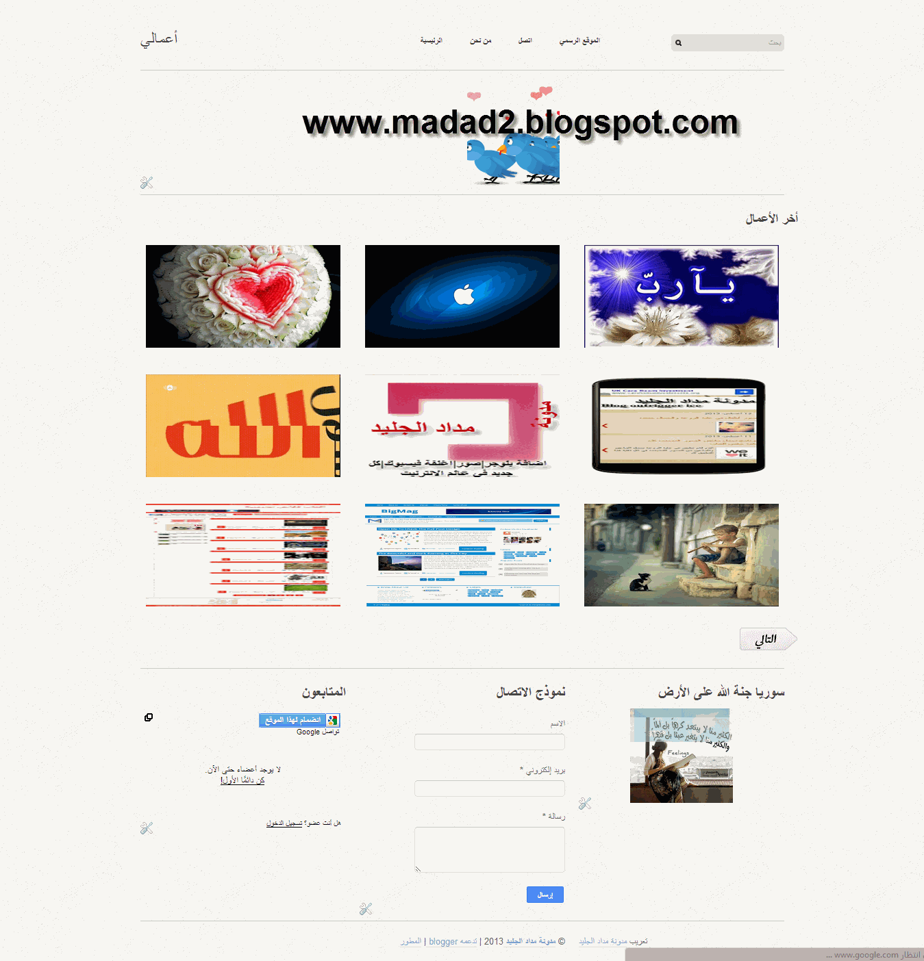 للتعديل على شريط أخر المقالات أذهب الى القالب ثم إضغط على تحرير html ثم أنزل في أخر القالب سوف تجد الكود هناك قم بتغيير الرابط www.madad2.com برابط مدونتك