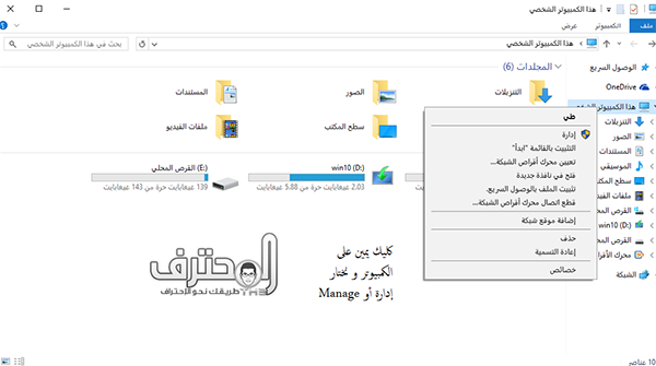 نذهب إلى الكمبيوتر و نضغط كليك يمين ونختار إدارة