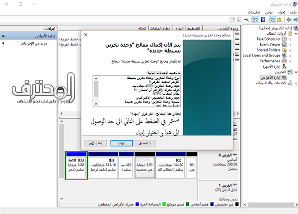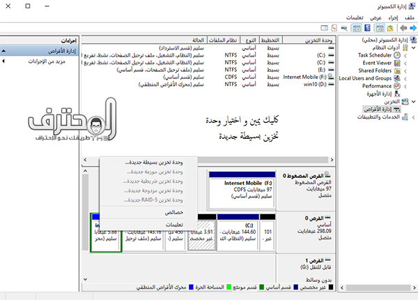 ينتج لنا بارتيشن جديد بدون اسم نعمل كليك يمين ونختار وحدة تخزين بسيطة جديدة