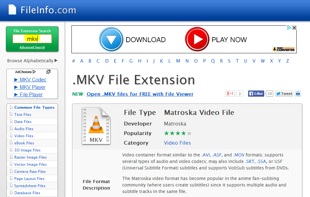 fileinfo واحد من بين المواقع الكبرى التي تتوفر على قاعدة بيانات ضخمة تستطيع من خلالها تحديد و معرفة البرامج التي تشغل كل صيغة، حيث يوفر لك الموقع لائحة تضم العديد من البرامج لكل نظام (mac، windows، linux) بالإضافة إلى