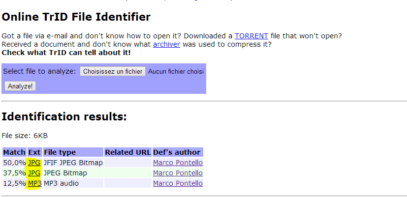 و في حالة عدم وجود أي مؤشر لتمديد ملف ما، يمكنك تحديده بكل بساطة عبر خدمة TrID المباشرة ، حيث يتم اطلاعك على التمديد المحدِد للبرنامج، و كل ما يتوجب فعله هو تحديد البرنامج المناسب لهذا التمديد عبر أحد المواقع المذكورة أعلاه .