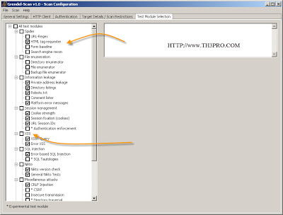 في هاته الواجهة تختار الثغرات التي تريد فحصها في موقعك إختر منها ماتريد تم بعد ذلك توجه إلى القائمة الرئيسية في الاعلى وانقر على