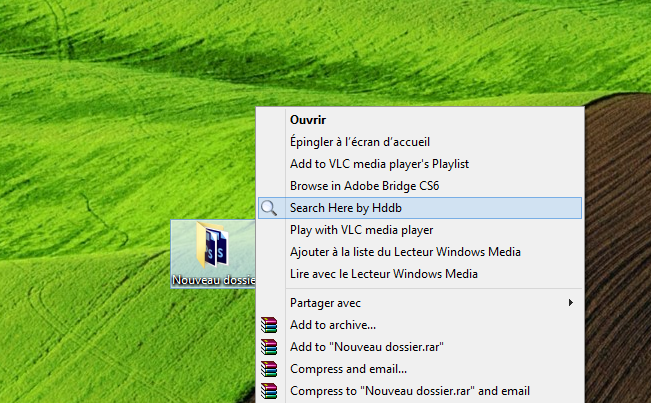 و يتميز البرنامج بكونه يتيح لك البحث في مجلد معين بكل بساطة عن طريق الضغط على زر الفأرة الأيمن ثم اختيار ‘Search Here by Hddb’ .