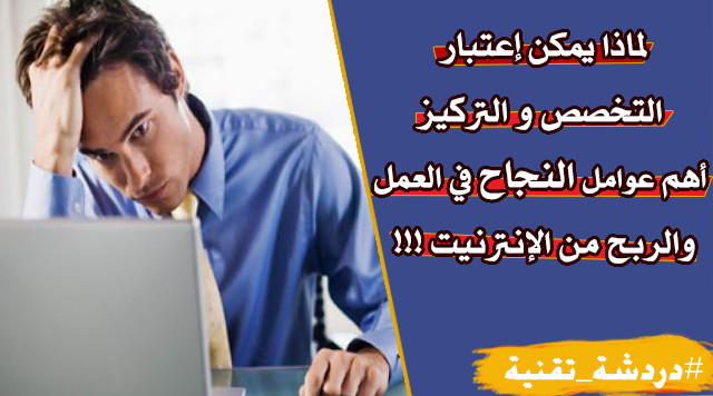 #دردشة_تقنية أحببت أن أسلط الضوء أهمية التخصص و التركيز في مجال واحد في عملية الربح من الإنترنيت , هناك فئة من الناس تشكك قطعا في ماهية و مصداقية ما يسمى بالربح من الإنترنيت , و هناك فئة أخرى من تعلم بالفعل بحقيقته و جدواه و لكن لم تستطع لحد الآن أن تسلك الطريق الصحيح الذي يمكنها من تحقيق أرباح جيدة بالرغم من المجهودات التي يقومون بها , و أنا اعتقد أن عامل التخصص و التركيز هو من اهم العوامل التي تتحكم في نجاح الإنسان في الربح من الإنترنيت من فشله , سأحاول أن أناقش و أحلل هذا القول في الأسطر القادمة !