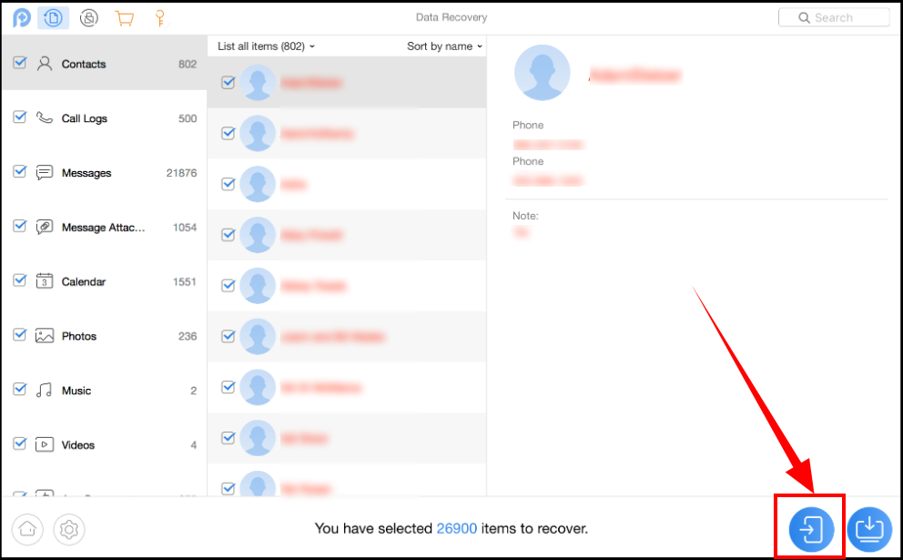 تحتاج إلى تحديد جميع أنواع البيانات التي تريد استردادها ثم انقر فوق زر الاسترداد. سترى زر الاسترداد هناك ، الأول هو استعادة البيانات مباشرة إلى الهاتف والثاني هو حفظ البيانات المستردة على جهاز الكمبيوتر الخاص بك. اختر حسب رغبتك. سيتم استرداد البيانات وحفظها بنجاح.