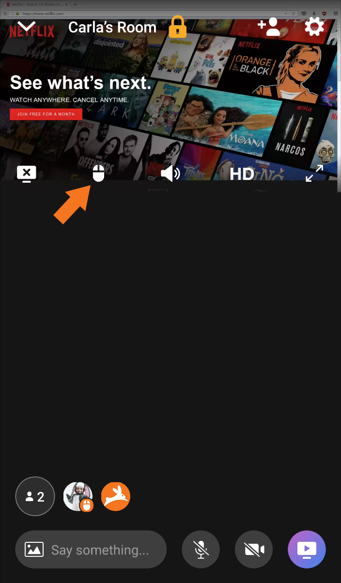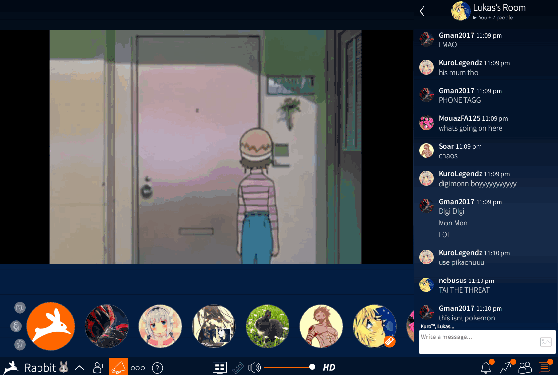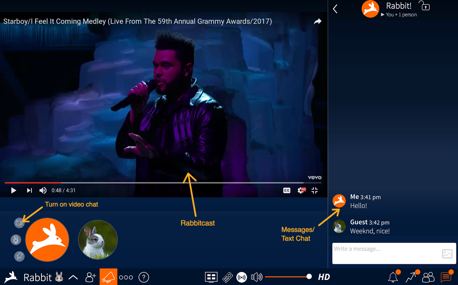 الأرنب يسمح لك لتبادل المحتوى مع الأصدقاء والفيديو والدردشة الصوتية، والدردشة النصية داخل غرفة الأرنب . يمكنك مشاركة المحتوى مع متصفح الظاهري (رابتكاست) أو عن طريق تبادل علامة التبويب كروم باستخدام لدينا حصة على امتداد الأرنب.
