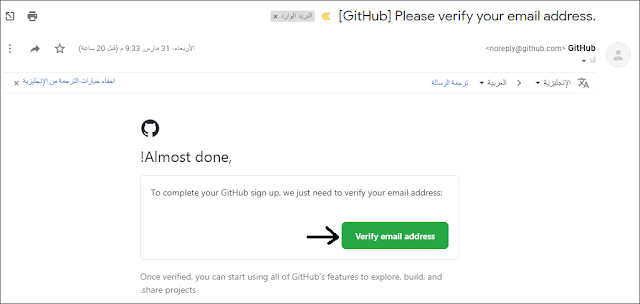بداية ستتوجه الى الرابط المتعلق بـ github (الرابط في الأسفل)، ومباشرة بعد الدخول ستحتاج للتسجيل وإنشاء حساب جديد في الموقع، والأمر في غاية السهولة ولا داعي لشرحه، وبعد انتهاء التسجيل ستتوجه للبريد الإلكتروني لتفعيل الحساب.