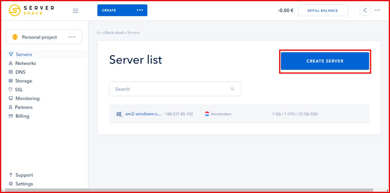 بعد الولوج للحساب الخاص بك سوف تجد ان في حسابك رصيد من المال كهدية التسجيل ومن اجل انشاء اردبي سوف تقوم بالنقر على create server