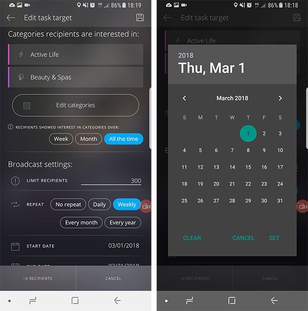 المستلمون : يسمح لك خيار “حد المستلمين” بتعيين الحد الأقصى من المستلمين الذين تريد الوصول إليهم.