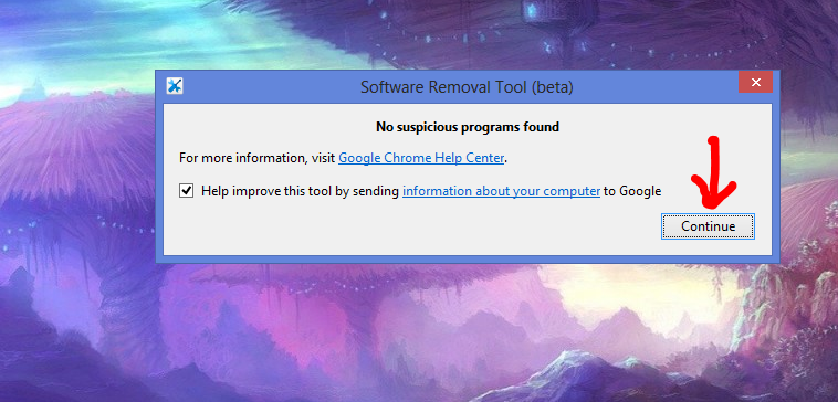 بعد الدخول للبرنام سيقوم بالبحث فإن وجد بعض هذه البرامج الخبيثة سيقدمها لك لتقوم بالموافقة على حذفها بالكامل، ثم سيقوم بإعادة غوغل كروم لحالته الأولى أي كما ثبثته اول مرة (لا تقلق فلن تفقد سجلات التصفح أو المواقع المفضلة) مع أنه سيقوم بحذف بيانات التخزين المؤقت والكوكيز وبيانات المواقع التي تقوم بتخزينها على جهازك وأظن أنها أمور غير ضرورية ولا أمانع في حذفها وذلك للتخلص من كل المشاكل التي قد تترتب عنها.