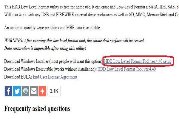 من بين البرامج التي تقوم بإعادة مفاتيح اليو إس بي و بطاقات الذاكرة، او اي وحدة تخزين اخرى لوضع المصنع هو برنامج “HDD Low Level Format Tool”. فهو مجاني. البرنامج يقوم بحل مشاكل السوفتوير على وحدات التحزين، ففي حالة لم يتم حل المشكل فتأكد أن وحدة التخزين لديك بها مشاكل على مستوى الهاردوير وتحتاج لصيانة من قبل تقني متخصص. المهم ننتقل الآن لتحميل برنامج، من خلال الضغط على الرابط التالي، تختار السنخة الموضحة في الصورة بالأسفل.