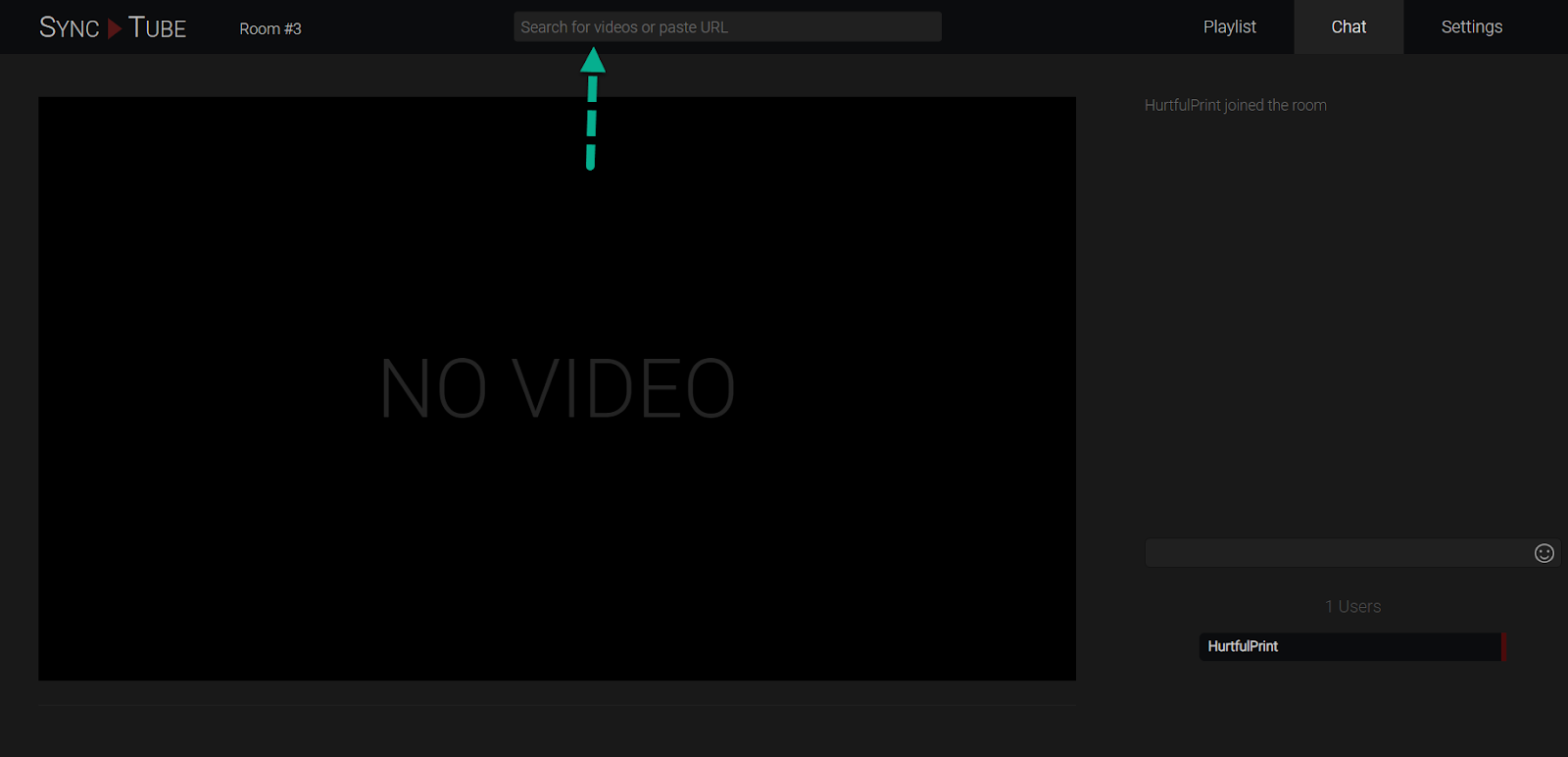 سينقلك عند النقر عليه إلى غرفة جديدة حتى تتمكن من وضع الفيديو الذي تريد تشغيله. انسخ رابط  فيديو ما على اليوتوب والصقه في الشريط الذي يظهر في أعلى الصفحة وسيبدأ التشغيل على الفور.