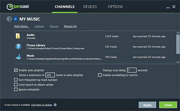 مع هذا البرنامج، يمكنك مشاركة مكتبة الموسيقى الخاصة بك مع أي جهاز متصل بالشبكة.وبذلك يمكنك الاستمتاع بالموسيقى المفضلة لديك في جهاز ألعاب الفيديو، والهواتف الذكية، وأجهزة التلفاز الذكية وأنظمة المسرح المنزلي، أو الحواسيب الأخرى ..الخ