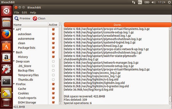 مستخدمي نظام الويندوز على دراية ببرامج مثل Wise CareوCCleaner ، التي تقوم بعمل مسح وتنظيف الملفات غير المرغوب فيها وجميع المخلفات التي تنتج عند استخدام الحاسوب لفترة معينة ،لذلك إذا كنت تستعمل لينكس فأقترح عليك bleachbit وهوبرنامج مشابه تماما للبرامج المذكورة سلفا.