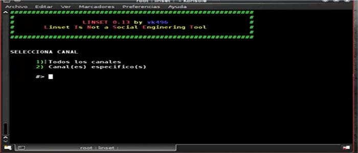 نقوم بكتابة 1 او 2 ثم انتر enter تظهر لدينا نافذة اخرى نختار todos los canales وذلك بالضغط على 1 ثم انترenter والصورة توضح ذلك: