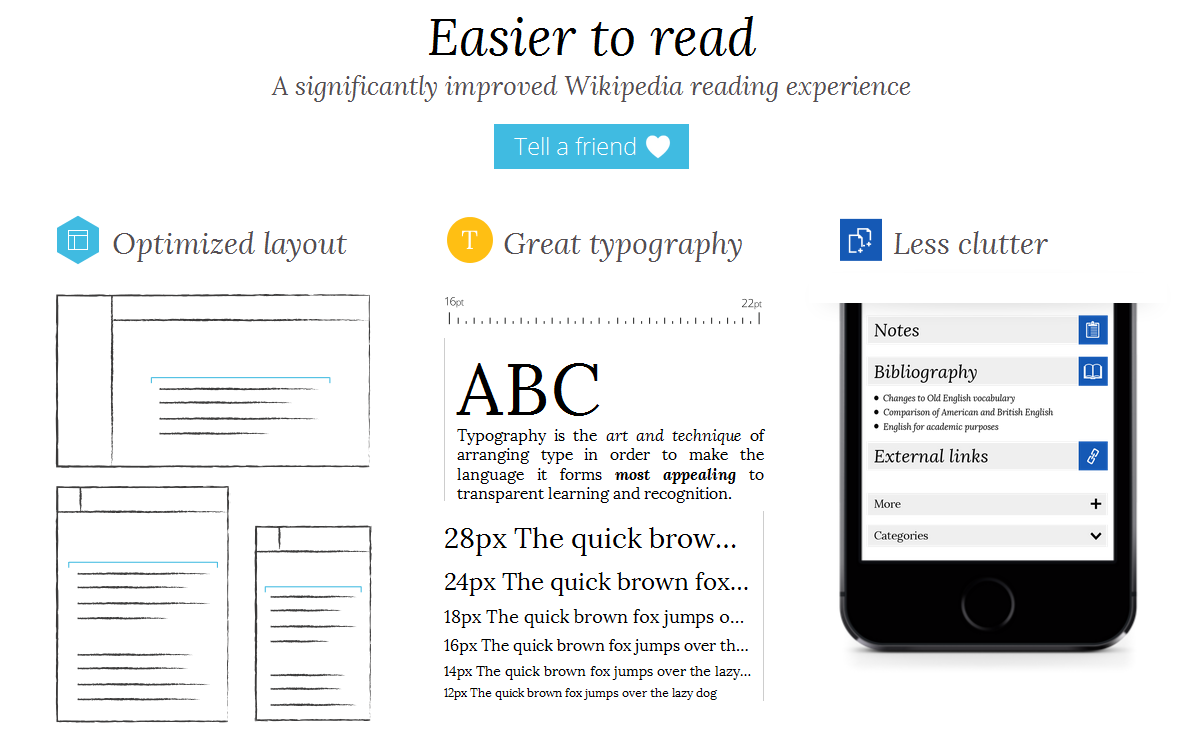لذلك ظهر مشروع جديد رائع وسيعجب كل محبي البحث على الأنترنت ويهدف هذا المشروع إلى خلق واجهة جديدة لويكيبيديا تكون أكثر ملائمة وأكثر تنظيما وعصرنة إذ سيصبح من الممتع قراءة المقالات على ويكيبيديا.