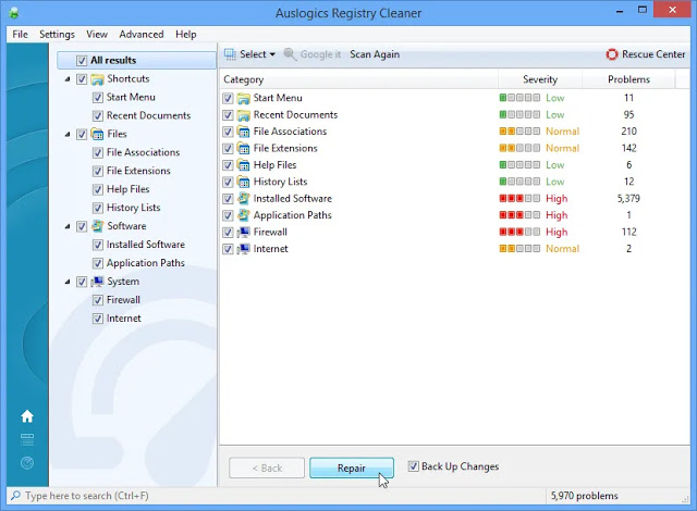 نظرًا لأننا نتحرك إلى أسفل في القائمة ، فإن البرنامج يصبح أقل إنتاجية ومفيدة. يعد Auslogics Registry Cleaner ، على عكس الآخرين الموجودين في القائمة ، مجرد منظف للسجل ولا يحتوي على أي ميزات أخرى لمساعدتك على تحسين أداء جهاز الكمبيوتر الخاص بك. ومع ذلك ، على الجانب الإيجابي ، فهو مجاني للاستخدام. يمكنك فقط الانتقال إلى موقع الويب وتنزيله ببساطة. يتطلب الأمر احتياطات أساسية مثل إنشاء نقطة استعادة قبل إجراء أي تغيير في سجل النظام ، لذلك عندما يحدث خطأ ما ، يمكن أن تساعد نقطة الاستعادة.
