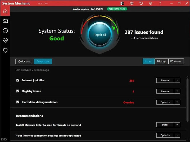 Iolo System Mechanic ميكانيكي تمامًا وهو خبير أيضًا. يمكنه إصلاح جميع المكسرات السائبة في جهاز الكمبيوتر الخاص بك. تحتوي أداة Iolo System Mechanic على الكثير من الميزات المختلفة لجعل الكمبيوتر يعمل بسلاسة مع تنظيف السجل. لقد حصلت على Internet Security للحفاظ على الخصوصية ، وتوفر إدارة كلمات المرور الحماية من الكثير من التهديدات عبر الإنترنت ، وإزالة البرامج الضارة لا تحتاج إلى شرح ، وبرامج تحسين الكمبيوتر الأخرى. ميكانيكي نظام Iolo ليس مجرد برنامج ؛ إنه جناح. تساعد الميزات في تبرير سعره. واجهة المستخدم الخاصة بالتطبيق رائعة وبديهية أيضًا. بالنظر إلى الميزات ، إذا كنت بحاجة إليها ، فلن تندم على شرائها. إنه بالتأكيد أحد أفضل منظفات التسجيل لنظام التشغيل Windows.